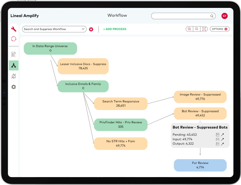 Amplify™ ability to create and reuse workflows delivers consistency to the discovery process, saving time and increasing efficiency.