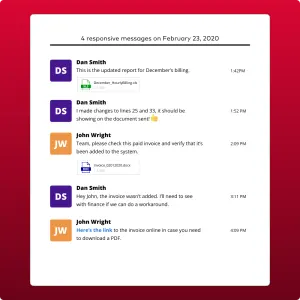 Break down chat data into manageable components for review. See the full and daily conversations, individual messages, and associated attachments.